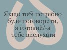 "Я поруч. Можеш звернутися до мене за потреби і я докладу усіх зусиль, щоб допомогти"
