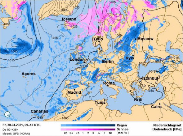 У Києві 30 квітня вітер також очікується рвучким. Дощ, імовірно з грозою, передбачається в другій половині дня та ввечері. Повітря в столиці прогріється до +18°С.