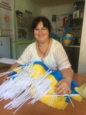 Я привезла багато синьо-жовтих прапорців. За мною бігли діти: "Дайте флажок... И мне... А можно сестре возьму? А там мама стоит, она стесняется. Сколько стоит? Бесплатно? Мне 5 штук".
