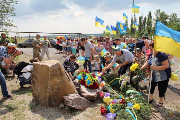 На перший погляд, просте дійство. Та на Донбасі - інше ставлення до прапору. Це символ миру, процвітання, країни. Його або люблять до нестями, або сахаються як чорт від ладана. Ви коли-небудь плакали, слухаючи гімн? А в Торецьку я це бачила - жінка, тримаючи дитину, плакала від "Ще не вмерла України".