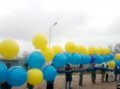 Українські активісти запустили в бік окупованого Криму прапор України з посланнями.