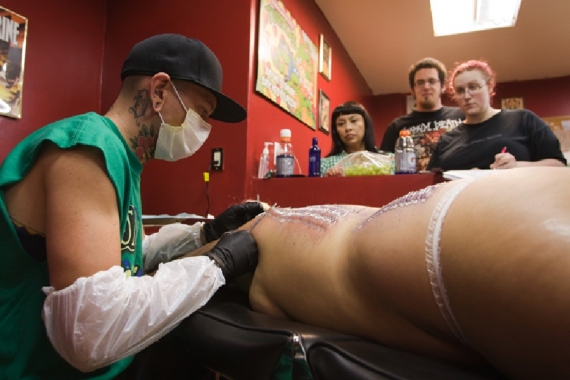 Мешканка США, 22-річна Стейша Рендалл відвідала наймасштабніший сеанс пірсингу в світі, повідомляє The Daily Mail.