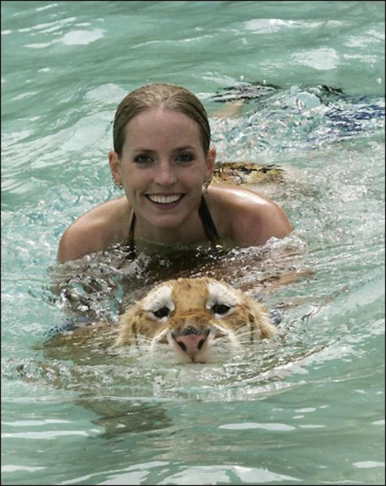 Експерт по тиграх доктор Багаван Антл, в рамках програми по догляду за тваринами в парку Маямі, навчив цих дивовижних істот плавати.