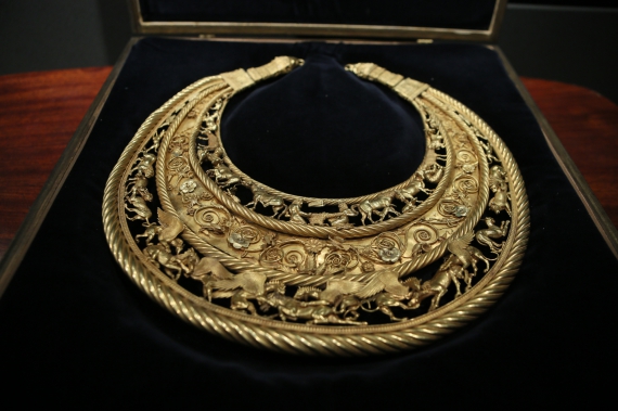 Сьогодні, пектораль з Товстої могили називають найціннішою знахідкою ХХ ст. Це нагрудна прикраса, яку носили знатні скіфи. Її вага - 1150 гр, діаметр - 30,6 см, виконана із золота 958-ї проби.