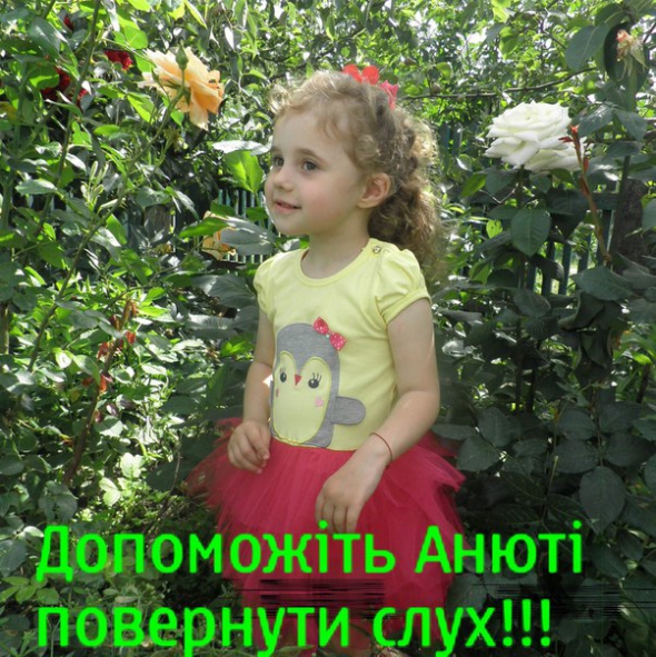 3-річна Анна Чупрун із села Олександрівка, Жмеринського району Вінниччини втратила слух після лікування антибіотиками. Лікарі діагностували у неї двосторонню сенсоневральну глухоту.