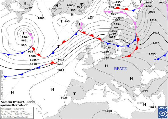 Завтра, 16 січня, практично вся континентальна Європа належатиме зоні впливу антициклону на ім'я Beate.
