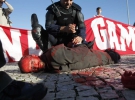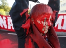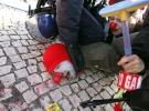 Акції протесту відбувалися і до суботньої демонстрації. Близько ста осіб символічно зобразили наслідки повітряного нальоту військ НАТО в Афганістані, в результаті яких гинуть мирні громадяни.