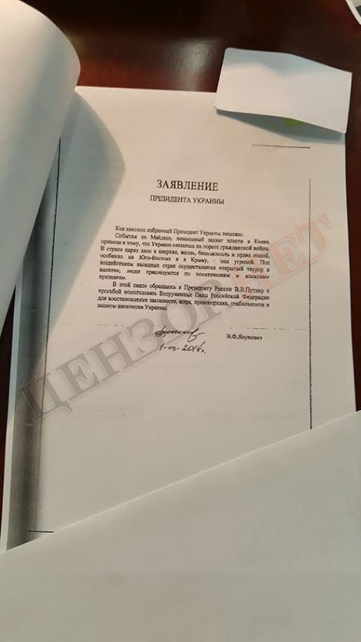 Раніше, голова Генпрокуратури Юрій Луценко повідомляв, що головна військова прокуратура отримала від секретаріату ООН фотокопії заяви Януковича з проханням ввести в Україну війська РФ.