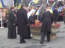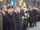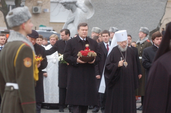 Віктор Янукович, Микола Азаров та Митрополит Київський і всієї України Блаженіший Володимир встановили до скульптури "Гірка пам'ять дитинства" композиції зі свічки, калини та колосків.