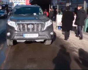 На ролику помітно, що позашляховик Toyota з українською реєстрацією стоїть просто серед тротуару. На ньому уже є квитанція про штраф. При цьому сам водій, який приїхав на форум через пів Європи, не дуже засмутився через штраф та пояснив, що "просто так вийшло".
