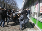 Всього без пояснення причин було затримано п"ятеро осіб. Крім того, в ході затримання була розбита вітрина магазину.