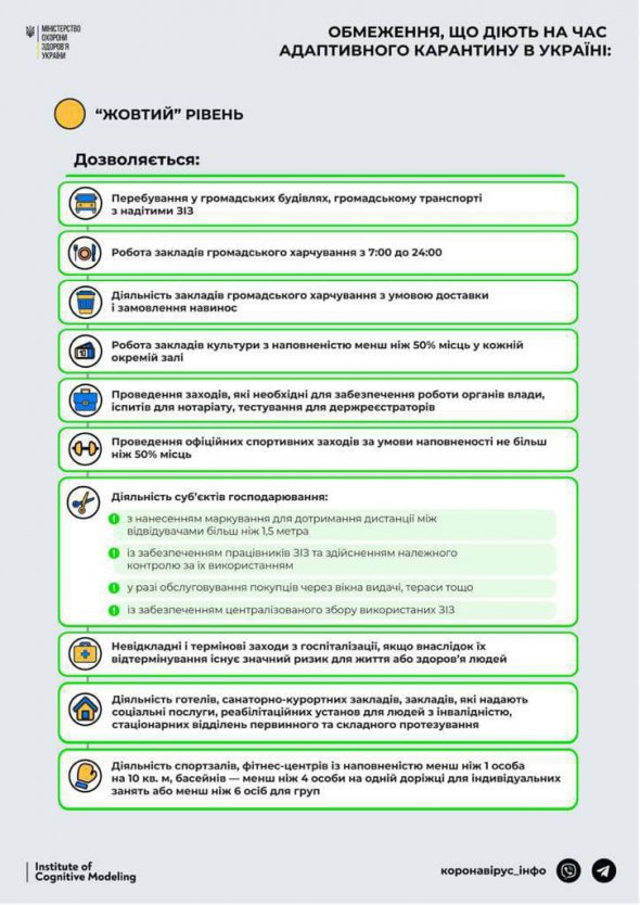 Уся Україна перейшла в жовту зону карантинних обмежень. Сьогодні туди з помаранчевої зони перевели Миколаївську й Черкаську області.