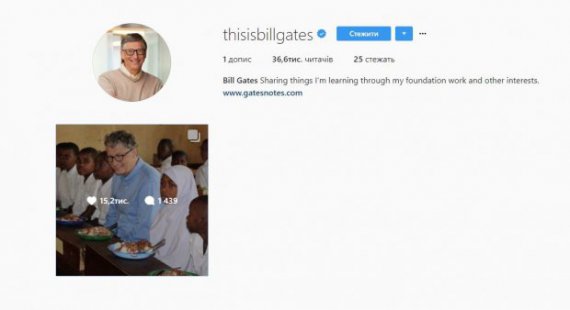 Найбагатша людина світу Білл Гейтс зареєструвався в соціальній мережі Instagram. Лише за 16 годин після публікації першого фото, на його акаунт підписалось більше 36 тисяч людей.