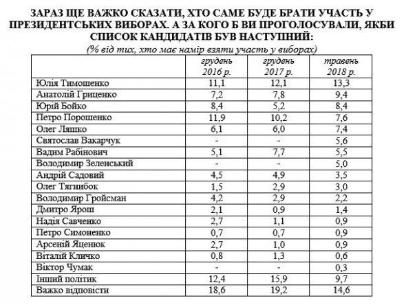 Також соціологи оприлюднили рейтинг потенційних кандидатів у президенти.