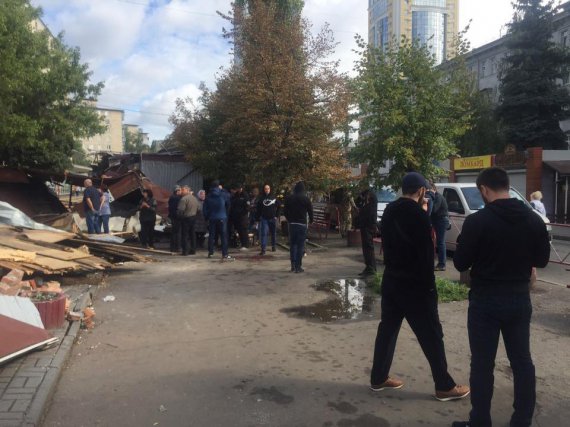 "З самого ранку на місце зруйнованого ринку приїхало понад 40 невідомих і почали бити тих, хто перебував біля залишків зруйнованих кіосків. Били всіх підряд, навіть жінок. Одній жінці мало не зламали носа".