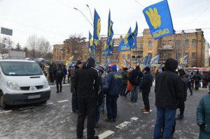 У столиці біля Посольства пікетують активісти "Національного корпусу", "Свободи" та інших політичних партій.