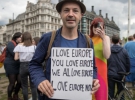 Зазначається, що в акціях взяли участь сотні людей з європейськими прапорами. Вони тримали плакати "Прощай Великобританія!", "Я європеєць, а не британець", "Ви вкрали наше майбутнє", "Я люблю Європу".