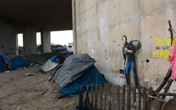 Британський вуличний художник Бенксі створив свою нову інсталяцію у таборі біженців у французькому Кале, намалювавши на стіні Стіва Джобса у вигляді мігранта.