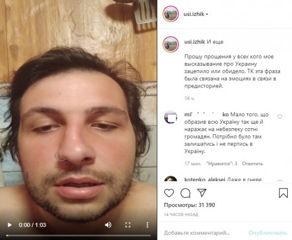 Згодом в Instagram опублікував ще одне коротке відео. Цього разу - з вибаченнями. Образу України пояснив емоціями після важкого перельоту та сказав, що насправді вважає Україну своєю батьківщиною й любить її - тому й повернувся.