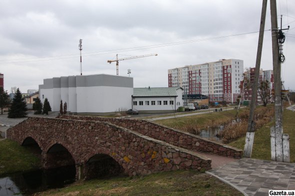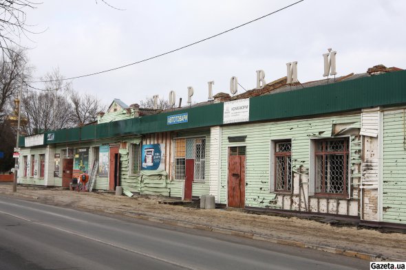 Виходимо навпроти невеличкої алеї. Зупинка, яку місцеві називають "центр", розташована біля ряду старих залізних кіосків, переважно з господарськими товарами. Майже всі зачинені - чорні вікна без скла з решітками, зеленувата обшивка з обвугленими дірками, що поплавилась ще рік тому. За кронами дерев виблискують куполи храму.