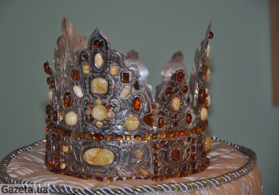 Скільки важить корона та коштує – організатори не кажуть. Подейкують, прикраса вартує понад 5 тисяч доларів. Вона оздоблена дрібним та крупним бурштином різних відтінків, від світло-жовтого до медового. Згодом для неї зроблять окрему вітрину.