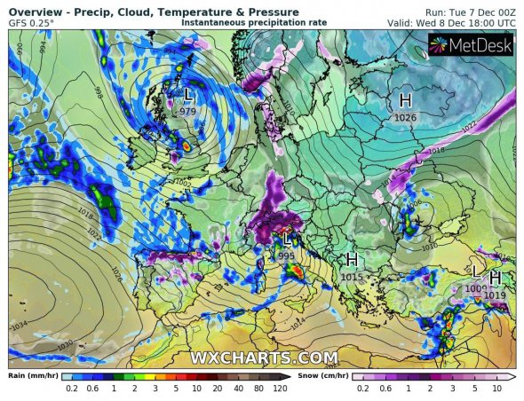 "Циклон на Півдні та його атмосферні фронти зумовлять 8 грудня некомфортну вологу погоду з дощем, мокрим снігом і крижаним дощем. Це некомфортно й небезпечно для доріг і тротуарів. Мокрий сніг налипатиме на деревах і дротах, що також є загрозою. Де буде холодніше - ожеледиця", - ідеться в повідомленні.