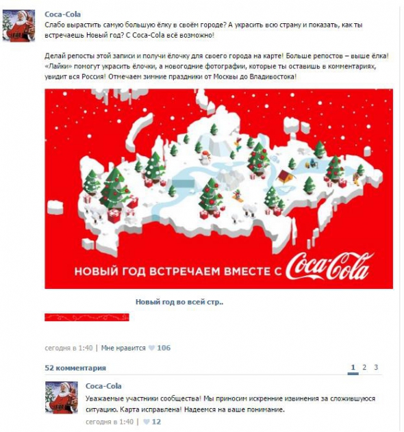 Карту розмістили без Криму, Калінінградської області й Курильських островів. Але згодом компанія вибачилася й "домалювала" всі ці території.