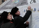 На головній площі країни біля скульптури Архангела Михаїла молоді люди встановили дві заготовки майбутньої листівки по 5 метрів кожна, а згодом пропонували усім охочим зробити свій внесок та долучитися до створення оригінального подарунку жіночій половині населення країни.