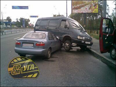 На пр-ті Визволителів Daewoo Lanos буквально нирнув під фургон ГАЗель.