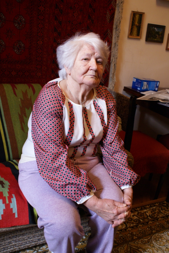 "Я погано ходжу, я маю два штучних суглоби в ногах. Бігати не можу, стріляти не вмію. Пістолета тримати не вмію. А ми ж програєм. Ми ж страшенно програєм... Скільки їх, провин комуністичної партії перед українським народом. І що ж сидимо? 80 мільйонів українців знищила радянська влада, а я маю сповідатися в сповіді, щоб Бог їм простив? Маю я то право, чи ні? Ні. Ворог має бути покараний. Я є крайня. Я не відношуся до хитаючихся. Я звірства радянської армії бачила з дитинства", - розповідає жінка.