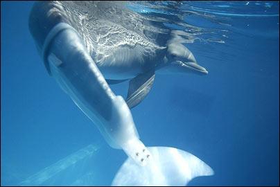 Тільки при ближчому огляді можна побачити, що рухома частина хвоста дельфіна є повністю протезована.