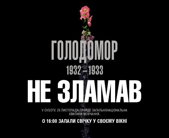 О 16:00 — загальнонаціональна хвилина мовчання та акція "Запали свічку пам'яті" – на знак скорботи і пам'яті про мільйони загублених життів наших співвітчизників.