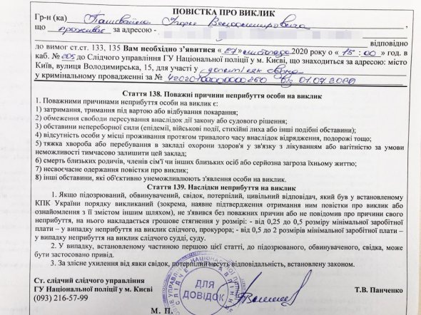 Пошивайло також оприлюднив скан повістки про виклик на допит.