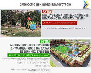 "У нас в Україні ж донедавна, щоб спроектувати дитмайданчик, наприклад, навіть на покрівлі підземного паркінгу, який майже не відрізняється за висотою від рівня землі, потрібно було отримувати відповідне відхилення від будівельних норм. Тепер цього немає. Проте у змінах до ДБН прописана низка обов'язкових вимог безпеки, яких потрібно дотримуватися", — розповів заступник міністра регіонального розвитку Лев Парцхаладзе.