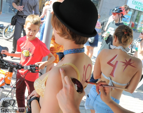 "Про велопробіг розповів чоловік. Вирішили, що гріх пропускати таку подію, - каже вона. - У нас сім'я активна - ми плаваємо, танцюємо, в пінг-понг граємо і ще багато чого робимо. А сім'я - це я, чоловік і малеча, - торкається до живота. - Зранечку, коли снідали, нам поступив сигнал: почуваємося добре і по ходу заїзду будемо вести себе чемно. Зібралися і прийшли".