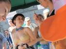 "Я одразу налаштовувалася на перемогу, - говорить Христина. Вона у вінку зі штучних квітів, на шиї намисто, топ купальник та кросівки також прикрашені квітами. Навчається в Придніпровській державній академії будівництва на архітектора. У Київ приїхала на літо - до свого хлопця, сама з Дніпропетровська. - У мене були різні варіанти костюмів: спочатку хотіла виступити у костюмі жінки-кішки. Сама його пошила, чотири дні витратила, але передумала. Українська тема мені ближче".