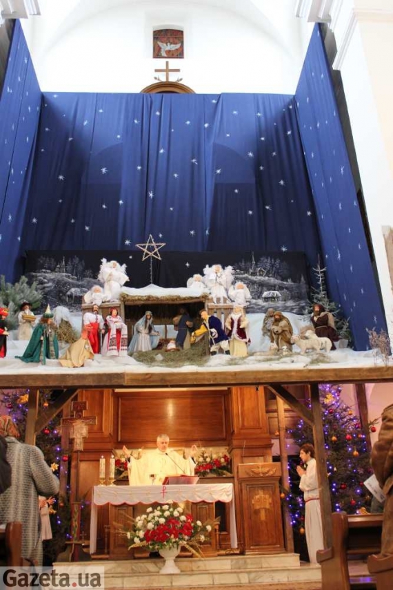 "Для вертепу ляльки привезли з Польщі. Вони зроблені з металу та воску. Є пара ляльок чоловік і жінка в українських народних костюмах. Костюми для них шили у Вінниці наші парафіяни. Поряд з ними люди у польських костюмах. Це селяни, які почули звістку, що народився Син Божий. Є ще пастирі, і ягнята, і ангели, Віфлеємська зірка. Загалом, десь з тридцять фігур. А те, що поляки та українці поряд - це ніби символ нашого братського духу", - сказала вірянка Ольга Ястремська.