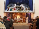 Вертеп ділиться на три яруси. На підлозі виставлені живі ялинки. Вони прикрашені іграшками. Над місцем священика з дерев'яних балок зімітували хлів, у який виставили лялькових людей та тварин. Орган, що у храмі, покрили темно-синьою тканиною із зірками - небо.