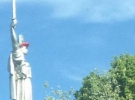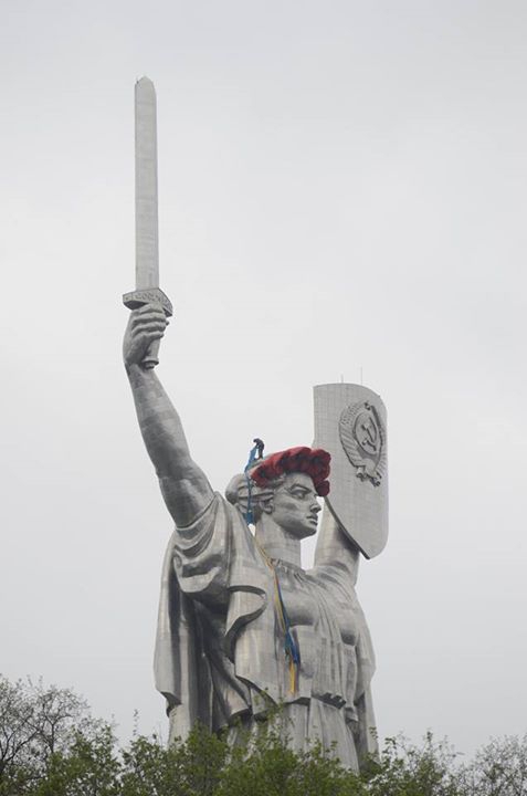 Голову київського монумента "Батьківщина-Мати" прикрасили віночком з червоних маків.