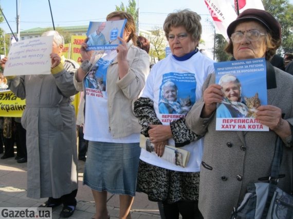 Деякі учасник були одягнуті у футболки з бабусею та котом з оновленим текстом: "Взнала, що онуки проголосували за регіони, комуністів та Королевську, переписала хату на кота".