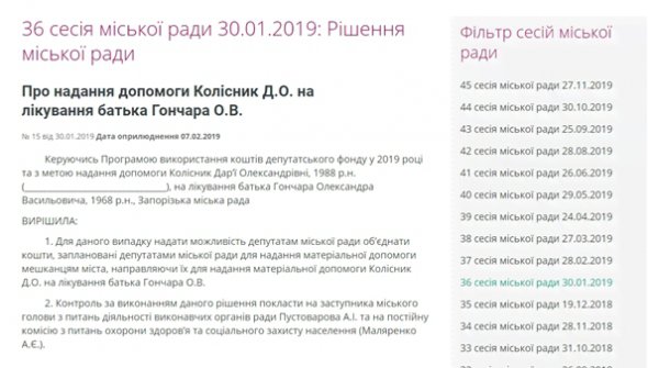 Депутати Запорізької міськради виділили 229 тис. грн допомоги дочці свого колеги нібито на лікування.