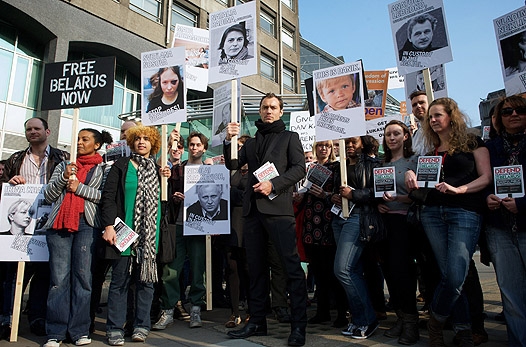 Світова громадськість обурена хвилею політичних арештів, що відбулись у Білорусі. Вчора, озброївшись плакатами з портретами журналістів, які опинилися у в'язниці, вулицями Лондона пройшлися Джуд Лоу і Кевін Спейсі.