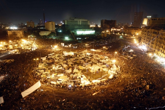 Народ на площі Тахрір у Каїрі, який дивився трансляцію на екрані, очікував від президента заяву про відставку, проте її не було.