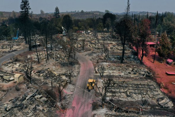 Згорілі мобільні будинки в Клірлейку, штат Каліфорнія. Вони постраждали від лісових пожеж.