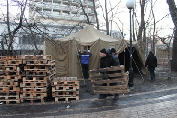 "Ми з завтрашнього дня припиняємо акцію за єдину Україну, але хочу підкреслити - саме припиняємо. Завтра після обіду намети будуть демонтовані. Ми приберемо парк, щоб кияни мали змогу новорічні свята гуляти тут", - пообіцяв один з керівників антимайдану Олег Калашников, однак обіцянку провладні мітингувальники так і не виконали.