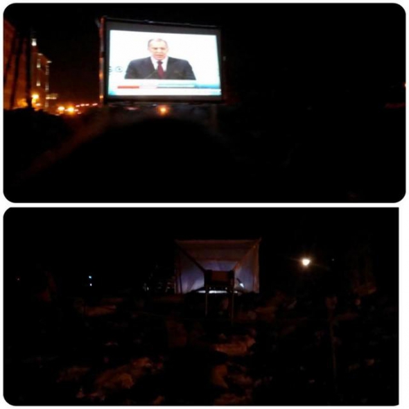 На Грушевського активісти встановили великий монітор, на якому для силовиків транслюються новини "5 каналу" і телеканалу "24".