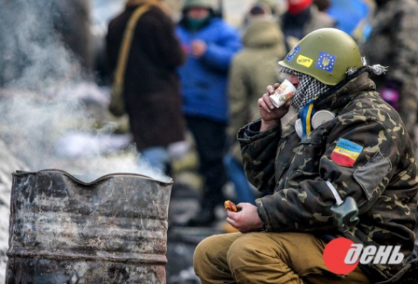 Зранку у столиці холодно, але людей досить багато. Більшість гріються в будівлях і наметах.