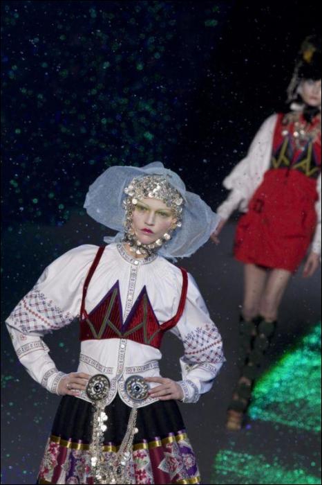 Іншу частину колекції об"єднувала еклектика. У моделях поєднувалися елементи різних стилів. Чітко простежувалися риси народних костюмів країн Східної Європи. Так, деякі моделі були одягнені в блузи, що нагадують українські вишиванки.