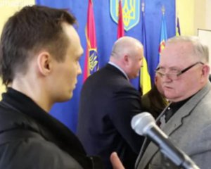 Коли на сцену піднявся Петро Цибенко, виникла сварка. Далі до Різниченка побігли чоловіки, які почали доводити, що "георгієвські стрічки - це історія". Після цього ветеран АТО вдарив Віктора Палія головою в ніс.