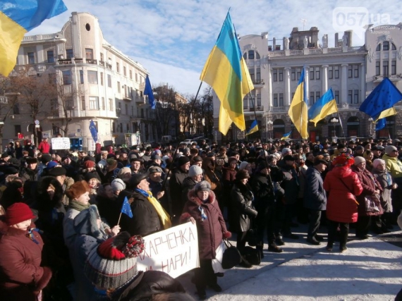 Розповісти присутнім про останні київські події і підтримати їх "бойовий дух" приїхали відомі українські письменники, музиканти та просто громадські діячі брати Капранови. Також мітингувальників підтримували письменник і музикант Сергій Жадан, поет Артем Полежака. Багато тримали транспаранти з написами: "Захарченка на нари!" , "Єднаймося!", "За вашу и нашу свободу!".